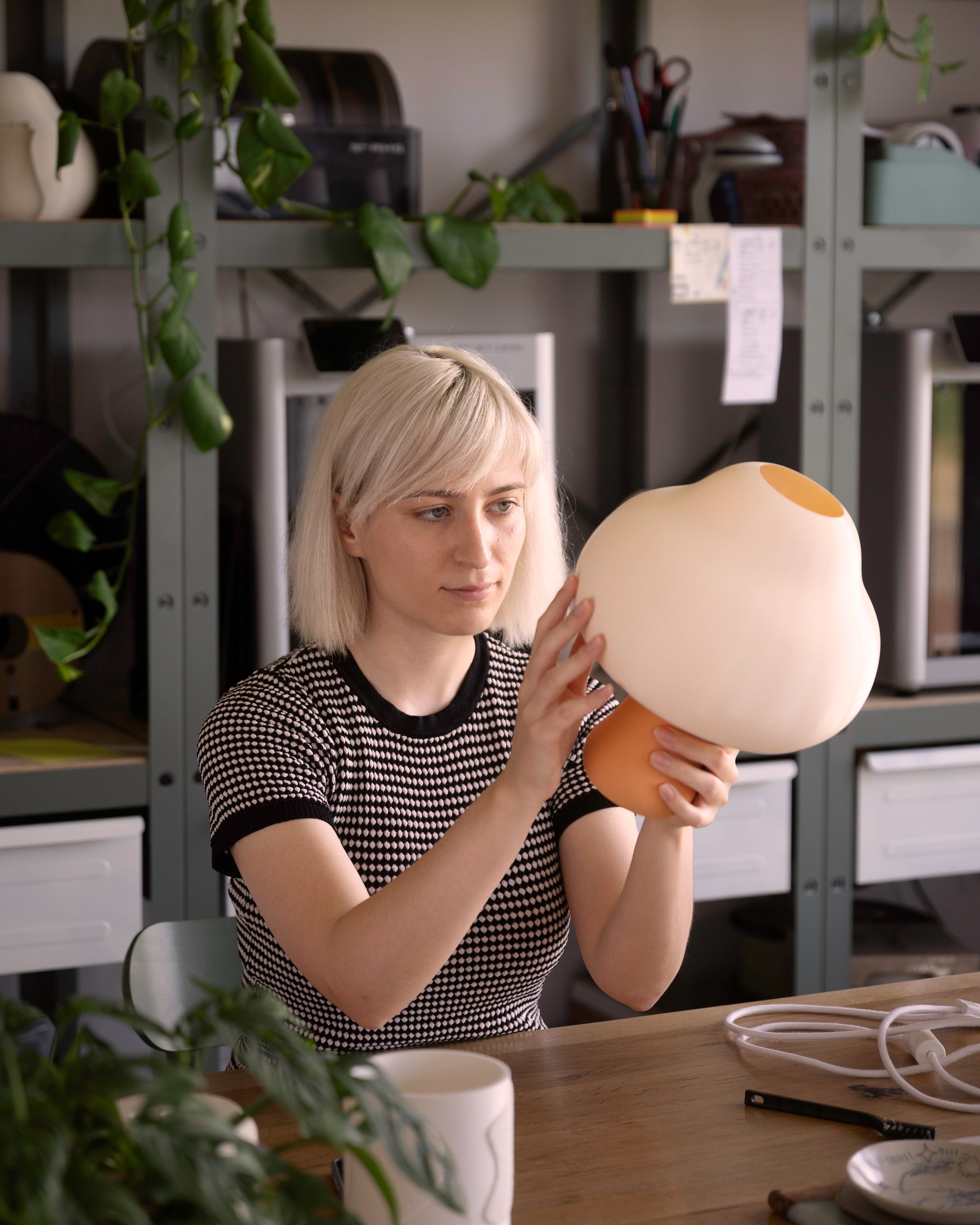 Welcome to my design studio. Explore 3D printed, plant-based lamps. Made to shine peaceful warmth.